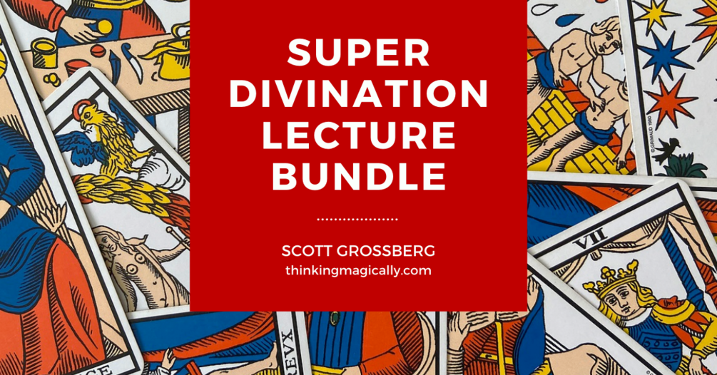 May 2019 - The Magic of Divination Lecture Notes - 7-Day Challenge - Includes Scott's Eight Principles of Elegant Prophecy, Scott's One Rule of Accurate Prediction, Day 1 Challenge - Choose Your Oracle, Day 2 Challenge - The Play of Fortune Telling, Day 3 Challenge - Create Content For Your Reading System, Day 4 Challenge - One-Card/Item Bauta Reading, Day 5 Challenge - Three-Card/Item Reading, Day 6 Challenge - The Vitruvian Square, Day 7 Challenge - The Vitruvian Square Reading, BONUS: Day 8 Challenge - More Ways To Do Readings